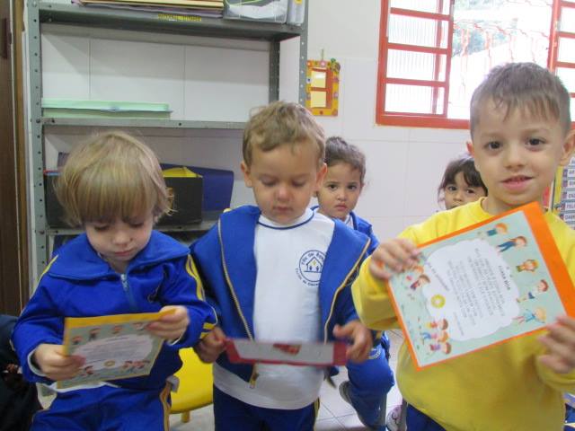 No último dia 15/02/18 (quinta-feira), foi comemorado o “Dia Internacional da Amizade”. A Villa dei Bambini não poderia ficar fora desse evento tão significativo e promoveu a “Troca de cartões do Amigo”. As crianças do Minimaternal ao Jardim II realizaram a confecção do cartão de uma maneira criativa utilizando desenhos e colagens variadas. Depois, em um momento único e significativo, cada criança ofereceu o cartão confeccionado a um amigo de sua sala. O objetivo maior desse movimento é a percepção do verdadeiro valor de “doar, presentear”, neste caso, cada criança ofereceu o seu cartão a um amigo e recebeu outro como presente. Também foi enfatizado o valor da verdadeira amizade e como é importante sermos especiais para alguém. A mensagem colada nos cartões dizia assim: “COISA BOA” AMIZADE É COISA BOA, MAS QUE, ÀS VEZES, ESTREMECE. UM AMIGO BOM PERDOA! UM SORRISO E ELE ESQUECE. TODO MUNDO TEM DEFEITO. SEU AMIGO TAMBÉM TEM. MAS PRA TUDO DÁ-SE UM JEITO NA AMIZADE NOTA CEM. AUTORA: EVELYN HEINE