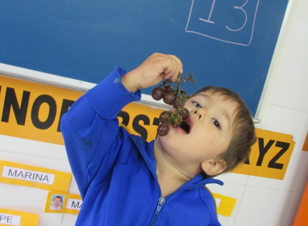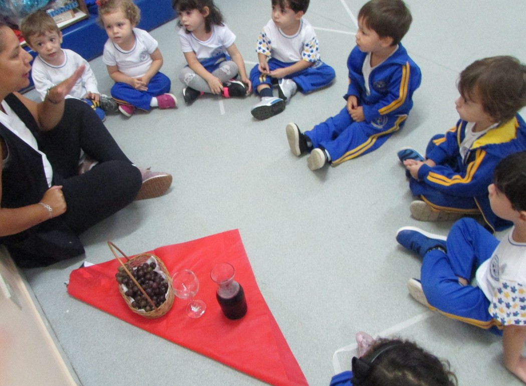 Para apresentar o tema do projeto escolhido, a professora Helena trouxe uma cesta com uvas e suco de uva como símbolo do famoso vinho de Bento Gonçalves. Para o Projeto Pedagógico 2019, que tem como título principal “Meu Brasil brasileiro… viajando com a Villa”, cada educadora escolheu uma cidade como base para os trabalhos durante o primeiro semestre. Na segunda metade do século XIX, o governo do Império do Brasil iniciou a colonização da região com uma população de origem predominantemente europeia. Desta forma, milhares de imigrantes, em sua maioria italianos da região do Vêneto, alemães, franceses, espanhóis e polacos, cruzaram o mar e subiram a Serra Gaúcha desbravando uma área ainda quase inteiramente virgem. Depois de um início cheio de dificuldades e privações, os imigrantes conseguiram estabelecer uma próspera cidade com uma economia baseada inicialmente na exploração de produtos agropecuários, com destaque para a uva e o vinho, cujo sucesso se mede pela rápida expansão do comércio e da indústria na primeira metade do século X. A partir de toda essa riqueza cultural, elaboraremos as atividades do projeto para as turmas do Maternal B, permeando todas as principais áreas de conhecimento como Língua Portuguesa, Matemática e Natureza e Sociedade. Será uma viagem incrível! O álbum completo da apresentação do projeto está disponível no APP da Agenda Digital, de uso exclusivo dos pais.